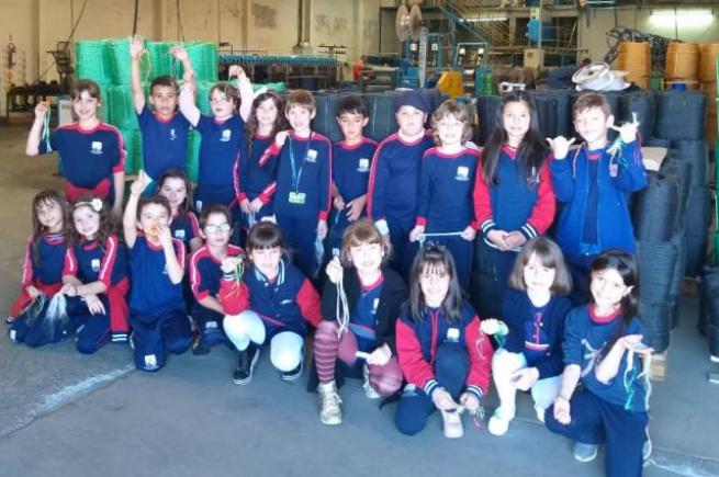 As turmas do 2° anos A e B tiveram a oportunidade de conhecer uma USINA DE RECICLAGEM DE GARRAFAS PET na cidade de Erval Velho.