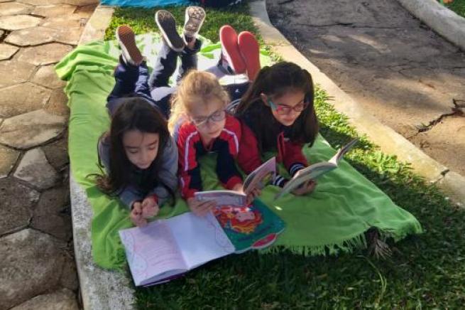 Na quinta-feira, 06 de junho, as turmas do Ensino Fundamental foram convidadas a vivenciar um momento de leitura e lazer no “Jardim do saber".