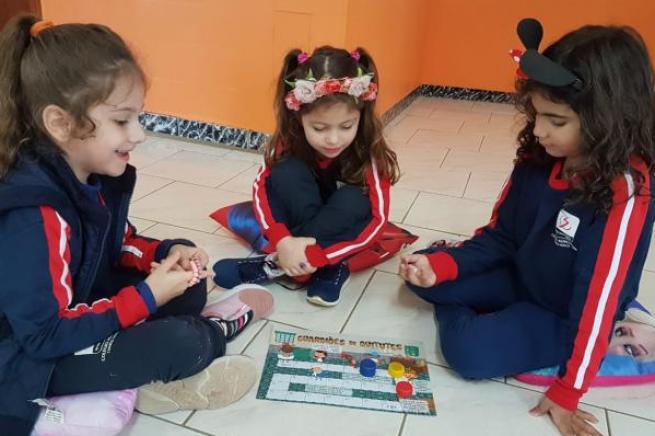 As crianças do Infantil III, foram instigadas e incentivadas pela professora Rosângela Schroeder de Oliveira a explorar o Jogo Guardiões de Quitutes.