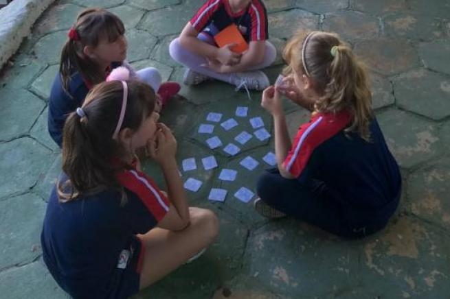 Os alunos das turmas do 2º ano A e B brincaram com o jogo Brincando é que se ama.