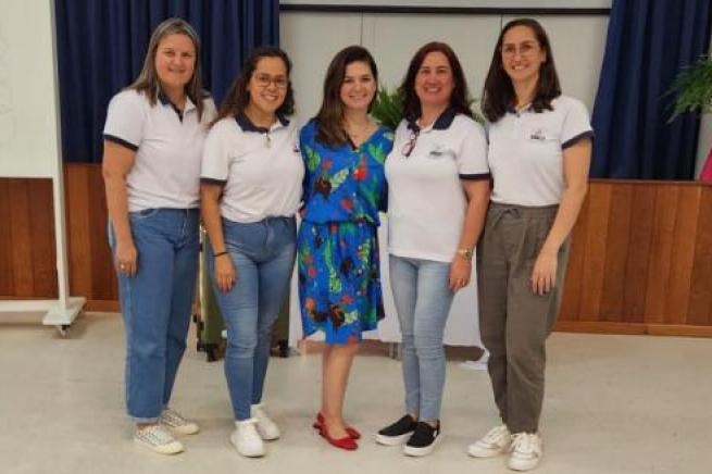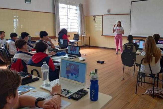 Educadores e alunos das turmas do Ensino Fundamental anos finais receberam as representantes da Plataforma Jovens Gênios.