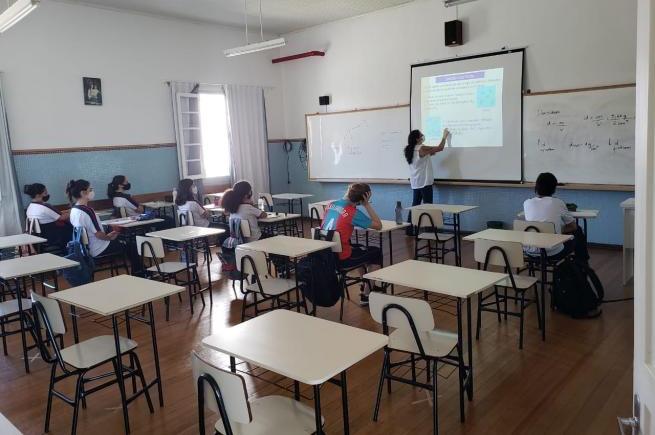Aula preparatória para os alunos do ensino médio que se inscreveram para a Olimpíada Estadual de Química.