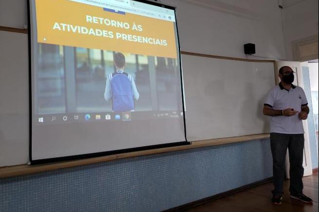 equipe diretiva e pedagógica reuniram-se para estudo do Plancon- Plano de Contingência da Escola para retomada das aulas presenciais para a COVID-19