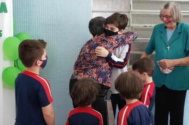 om a alegria característica das casas salesianas, uma representação da comunidade educativa e Irmãs Salesianas recepcionaram Irmã Nilza de Moraes...