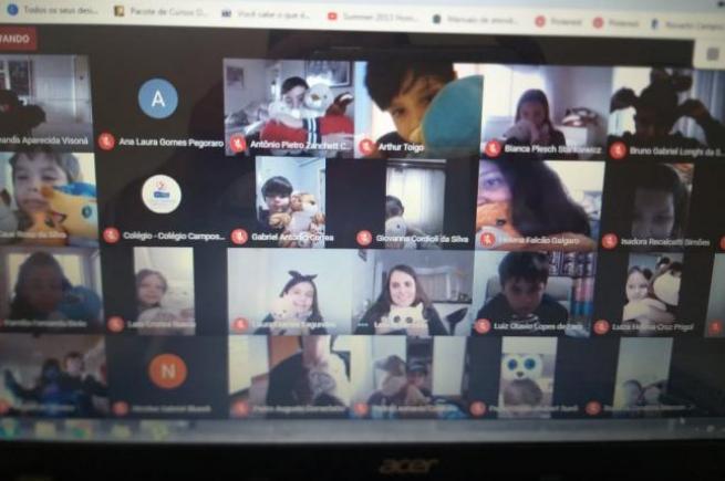 Para os alunos do Ensino Fundamental anos iniciais, foi sugerido convidar um amigo de pelúcia para a aula do dia 22/05 -Dia do Abraço.