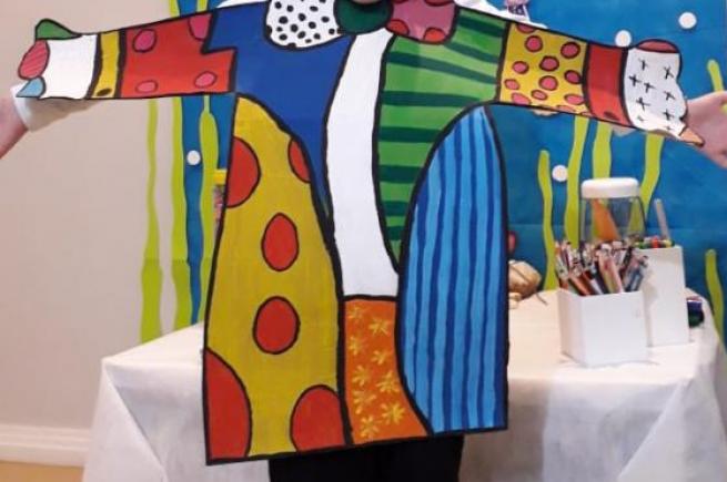 Para deixar essa data mais intensa, as crianças da Educação Infantil exploraram a obra de Romero Britto, intitulada “O Abraço”.