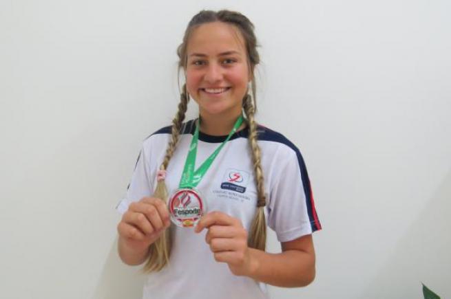 Participando do atletismo nesse fim de semana, na prova 400m rasos, Maria Eduarda Serpa ficou com a medalha de prata.